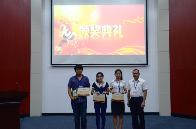 經過一番角逐,三名健康管理顧問涂帆、陳雅潔、黃燦然脫穎而出,榮獲冠亞季軍,生物醫藥公司總經理金總為獲獎選手頒發榮譽獎章。(圖文/杜莉)
